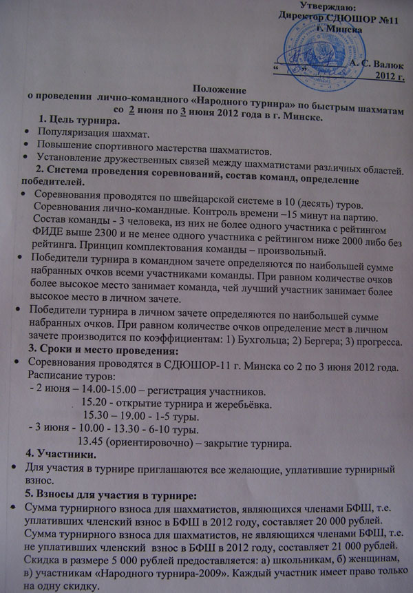 С 2 по 3 июня в столичной СДЮШОР-11 планируется лично-командный "Народный турнир" по быстрым шахматам.
