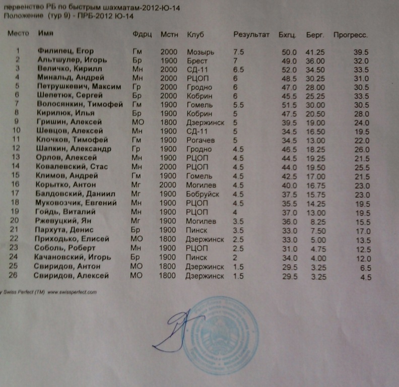В городе Кобрин закончились: первенство Беларуси по быстрым шахматам и международный юношеский турнир "Кобрин-2012".