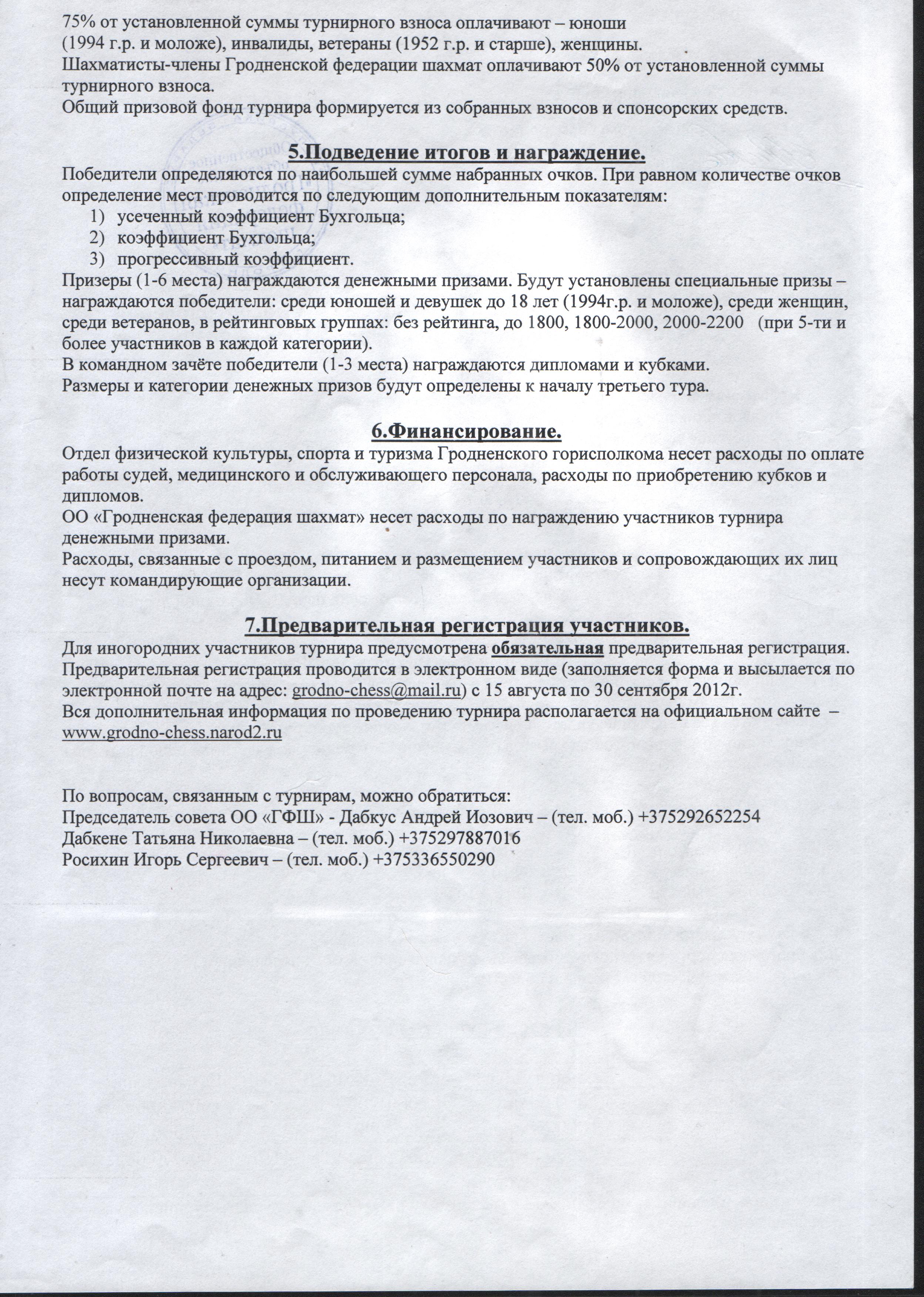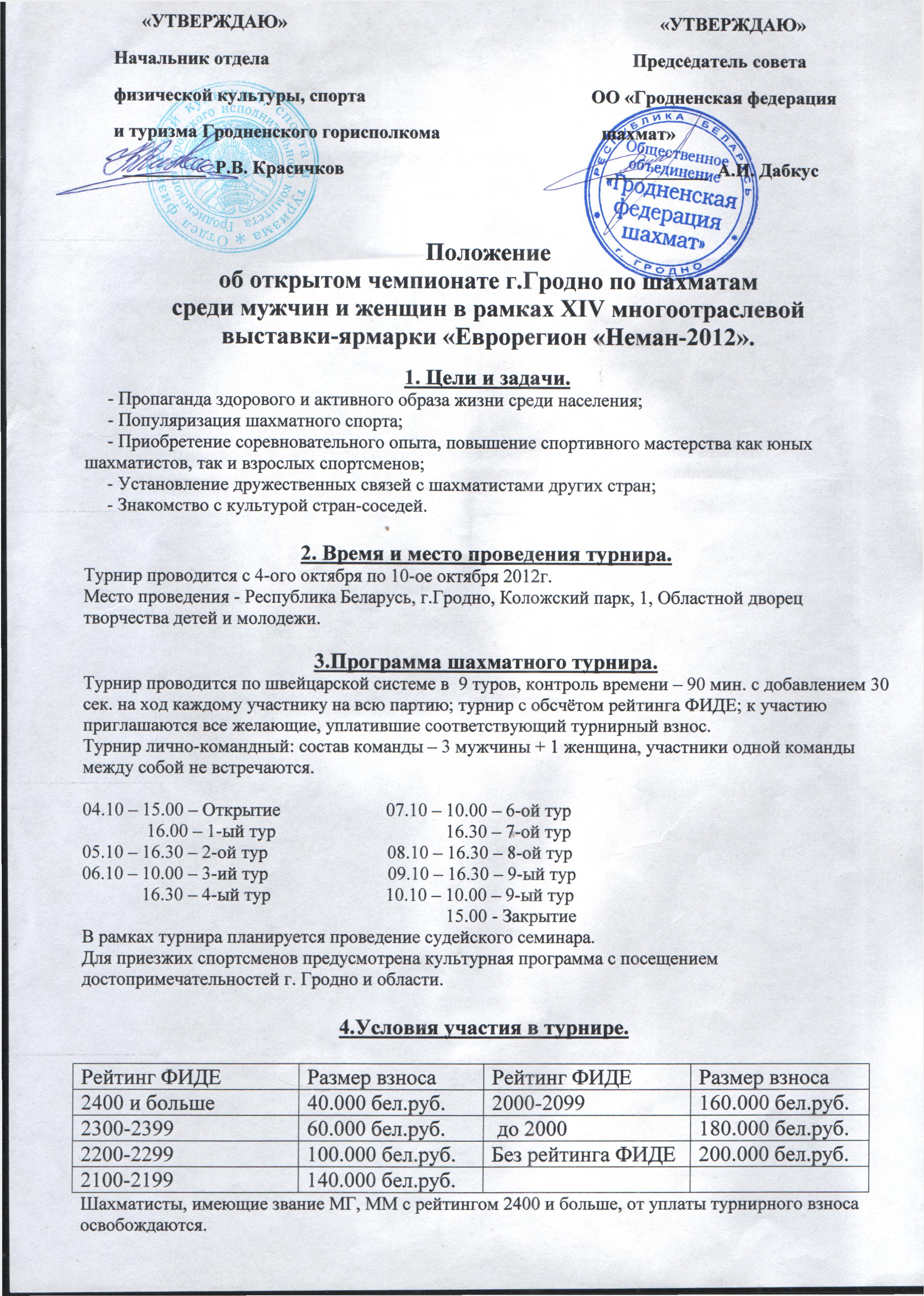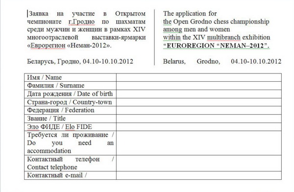 Открытый чемпионат г.Гродно по шахматам среди мужчин и женщин в рамках XIV многоотраслевой выставки-ярмарки «Еврорегион «Неман-2012».