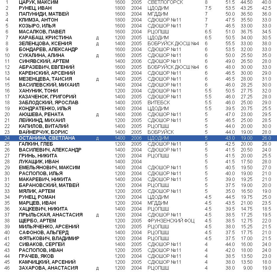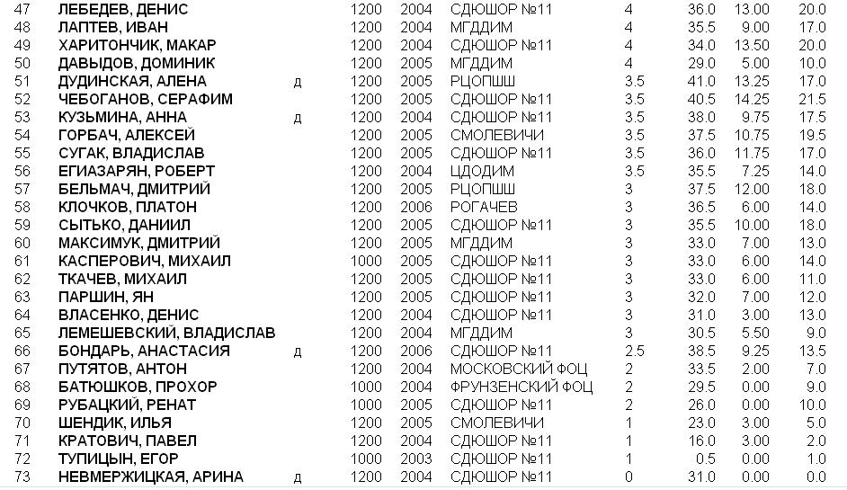 Республиканский турнир по быстрым шахматам, посвященный Дню учителя 05-07.10.2012 г., 2004 г.р. и моложе