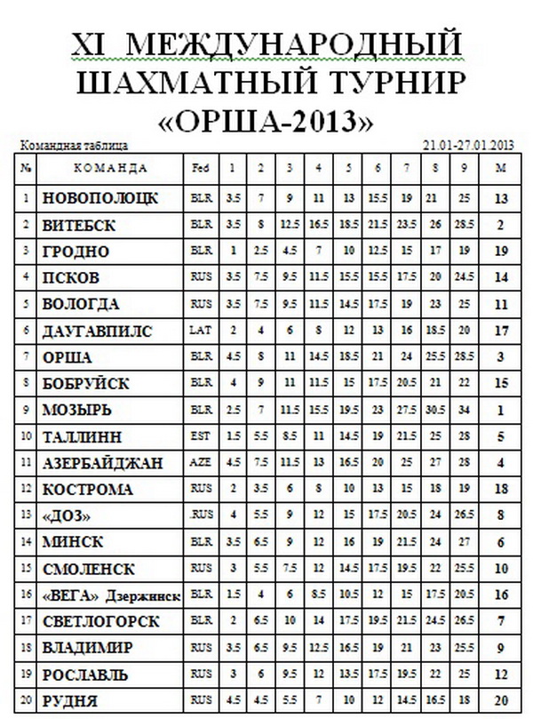 XI международный шахматный фестиваль «Орша-2013»