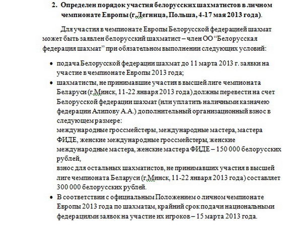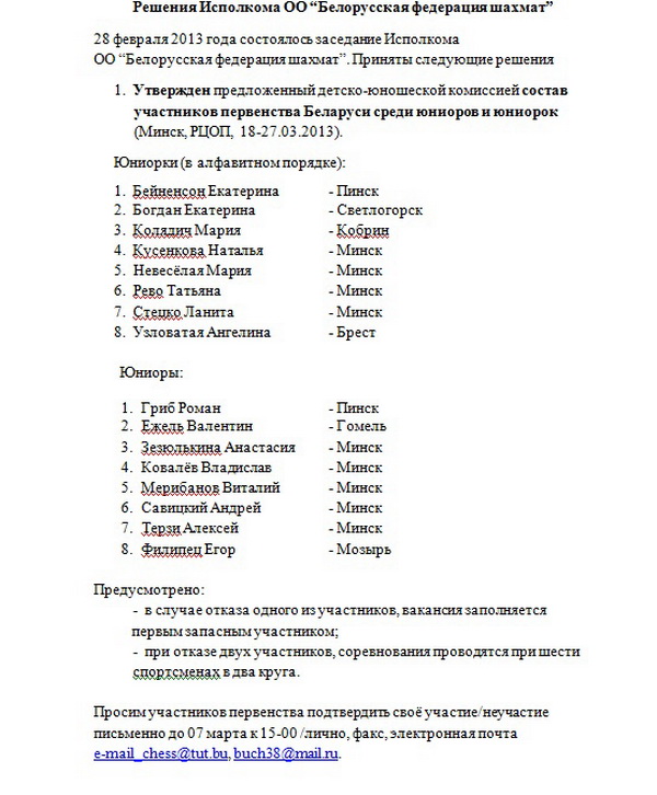 Решения Исполкома ОО “Белорусская федерация шахмат”