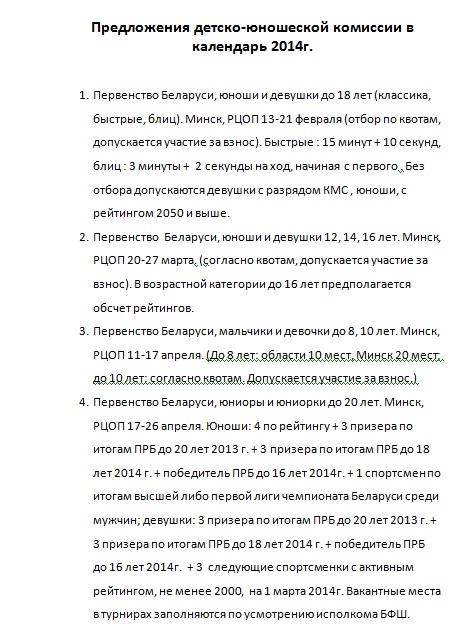 Публикуем для всех заинтересованных лиц предложения детско-юношеской комиссии в календарь 2014 года