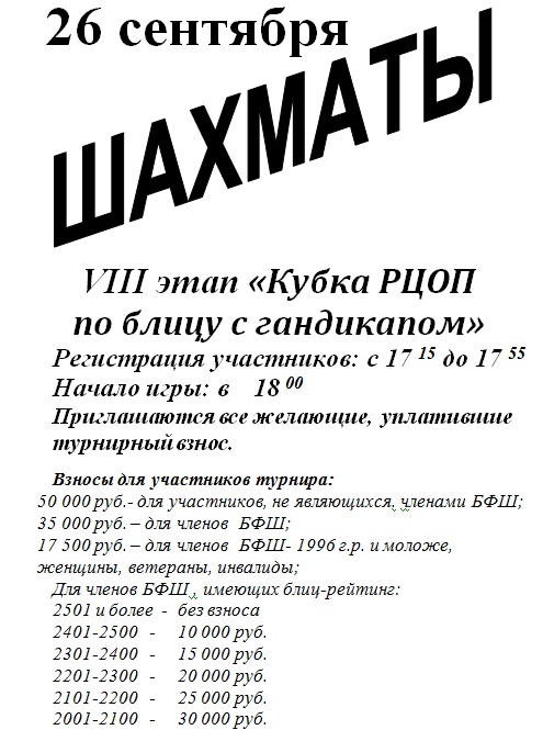 26 сентября в столичном РЦОПе пройдет VIII этап «Кубка РЦОП по блицу с гандикапом».