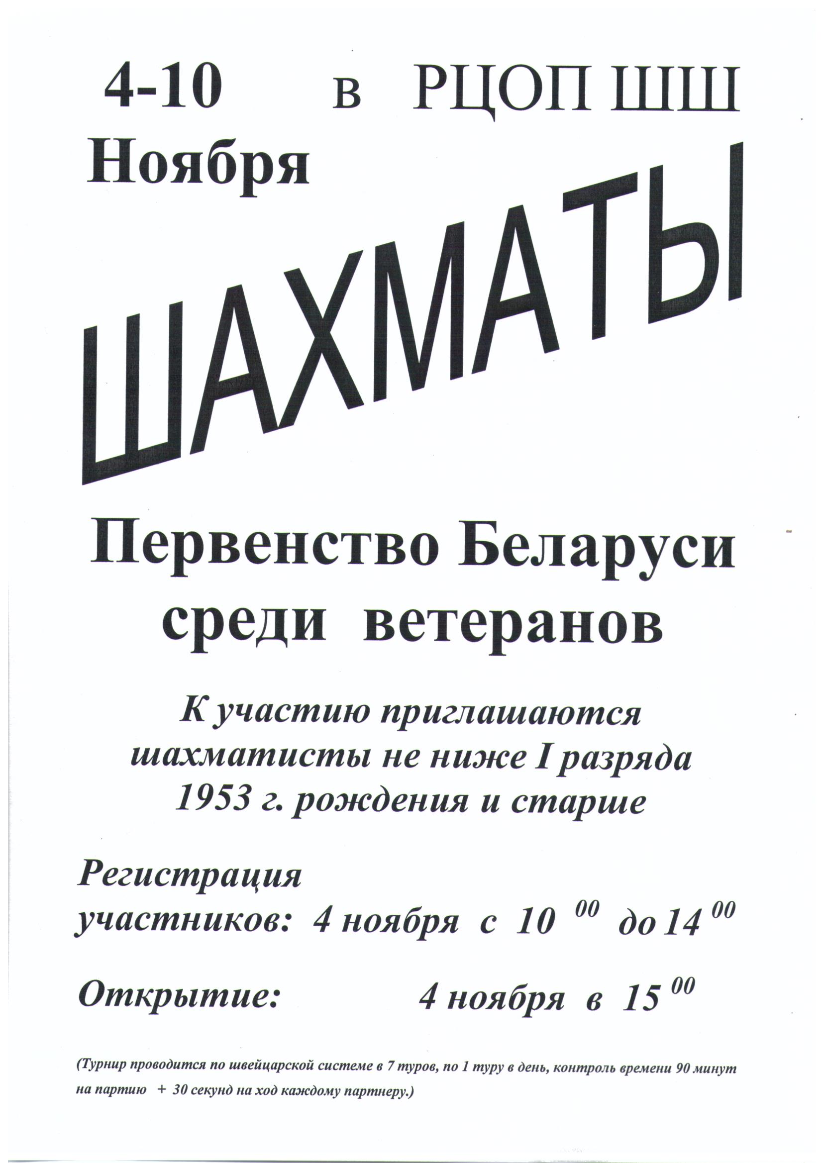 с 4 по 10 ноября в столичном РЦОПе пройдет первенство Беларуси среди ветеранов.