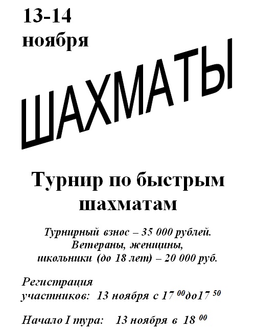 С 13 по14 ноября в столичном РЦОПе пройдет турнир по быстрым шахматам.