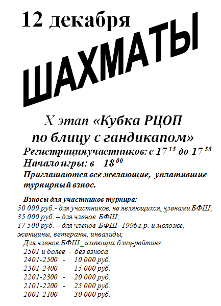 12 декабря в столичном РЦОПе пройдет X этап «Кубка РЦОП по блицу с гандикапом».