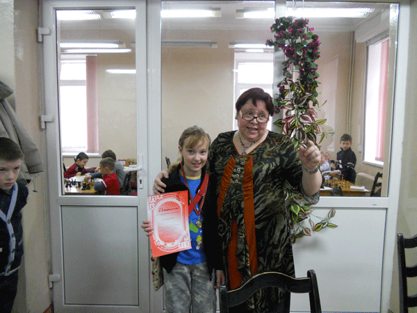 Девушки до 14 лет. Второе место у Щербаковой Лизы из Светлогорска с 5,5 очками и третье с 4,5 очками у Кривелевич Софьи из Гомеля.