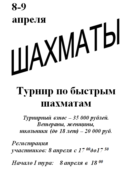С 8 по 9 апреля в столичном РЦОПе пройдет турнир по быстрым шахматам.