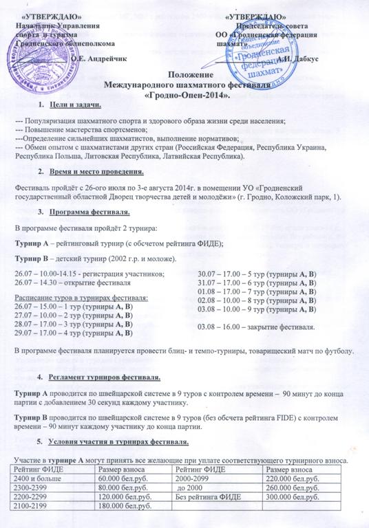 Международный шахматный фестиваль «Гродно-опен-2014».