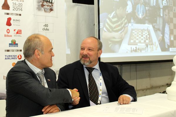 Вчера в Тромсё президент РШФ Андрей Филатов подписал меморандум о сотрудничестве в сфере школьных шахмат с председателем Шахматной федерации Туркменистана Муратом Бердиевым и вице-предстдателем Шахматной федерации Беларуси Владимиром Гинзбургом.Российская шахматная федерация предлагает стандартизировать систему проведения турнира среди школьных команд «Белая Ладья». Если шахматные федерации Туркменистана и Беларуси проведут чемпионат среди школьных команд, РШФ предоставит командам-победительницам национальных первенств места в финале «Белой Ладьи». Таким образом, в систему школьных чемпионатов «Белая Ладья» включатся новые участники, а финал турнира приобретет международный статус. РШФ берет на себя обязательства не только провести финальный, очный этап соревнования, но и помочь федерациям Туркменистана и Беларуси в проведении национальных чемпионатов. Подписавшие документ представители федераций считают исключительно важным развитие школьных соревнований, поскольку они не только популяризируют нашу игру, но и способствует возникновению дружеских отношений между школьниками во всем мире.