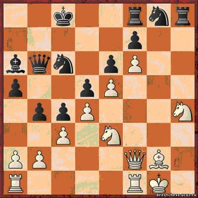 Кd419.c:d4 С:d4+ 20.Крh1 С:a1 21.Кa3 Сf6 22.Кc4 Сa6 23.Кg4 Сd4 24.Лf3 Лab8 25.Лg3Крh8 26.Сd3 С:c4 27.Ф:c4 Лb4 28.Фa6 Фb6 0-1