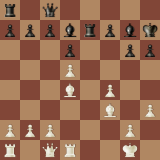 7.Bg5, и теперь черные оживляют игру перестроечкой: конь с с6 идет на g6, где примет участие в атаке короля, пешки строят центр, стесняя белые фигуры, а ладья занимает открывающуюся линию g. Атака получена.