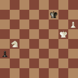 0. У белых всего одна пешка и та крайняя, бессильная, конь же их должен удерживать неприятельские пешки и думать о завоеваниях не смеет. Тогда как играть белым?